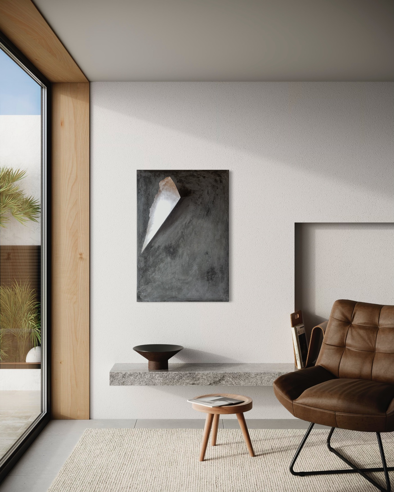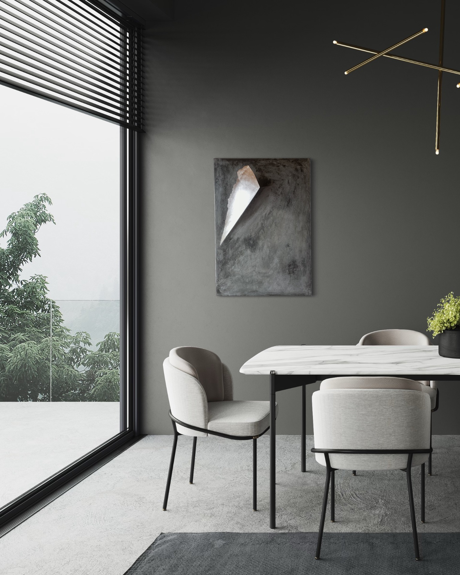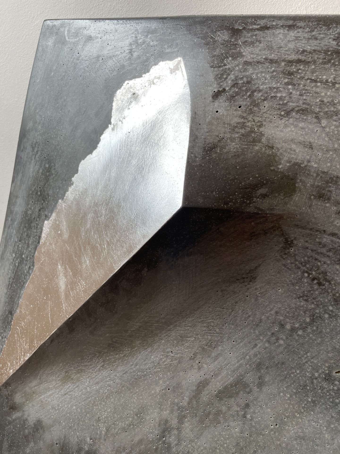 Black concrete, silver leaf